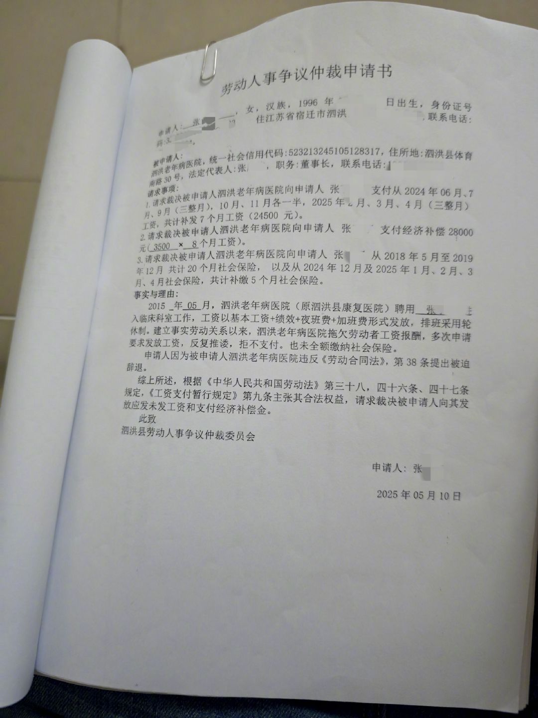 隨後,記者又聯繫了泗洪縣人社局,工作人員稱,目前該局仲裁院已介入此事,正在處置中。