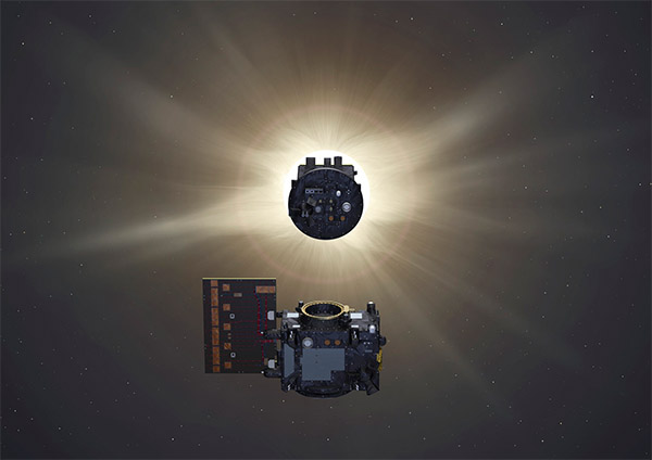 ESA表示,在5月23日進行的任務中,兩個航天器保持150米的距離,相對位置精確到一毫米以內,掩星體使用其攜帶的圓盤在日冕儀的光學儀器上投下陰影,完全覆蓋太陽的明亮圓盤,從而使日冕儀可以在不受太陽強光干擾的條件下捕捉日冕的圖像。