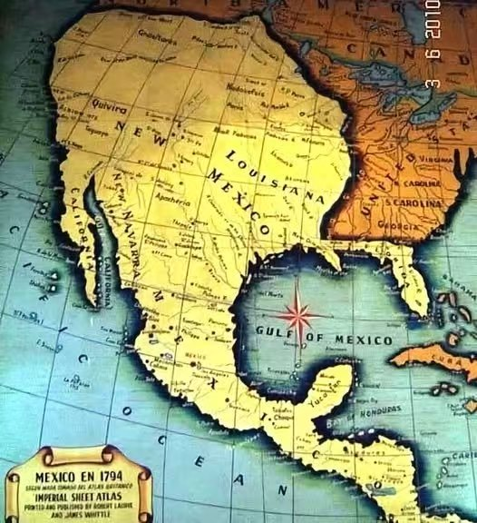墨西哥裔美國人阿萊克斯(化名)給筆者提供了這幅1794年的地圖,“這就是為什麼當特朗普要把墨西哥灣改名為美國灣,墨西哥人會如此憤怒。”美國如今的加利福尼亞、得克薩斯、內華達、猶他、亞利桑那、新墨西哥州的全部以及科羅拉多、懷俄明、堪薩斯、俄克拉荷馬州的一部分本來都是墨西哥的領土。