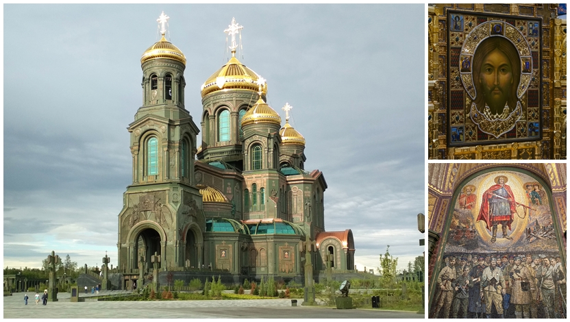 **王文:**這次我去俄羅斯,參觀了一個以前從未去過的莫斯科新建建築——位於莫斯科西南角大約30公里處的“武裝軍事大教堂”。據説這座大教堂是五年前為紀念二戰勝利75週年而建的。不知道你有沒有去過那裏。這一次我去俄羅斯,便直奔那座令人震撼的大教堂。大教堂展現了俄羅斯關於戰爭、軍事和保家衞國的理念,整體建築宏偉壯觀,內部裝飾也極為奢華。