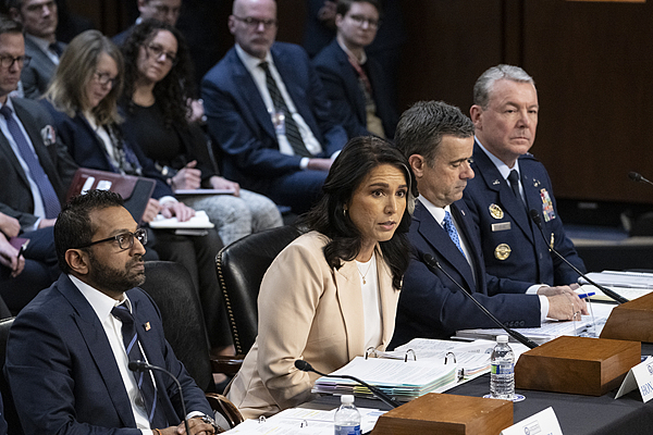 3月25日,加巴德(中間)出席美國參議院情報特委會聽證會。 視覺中國