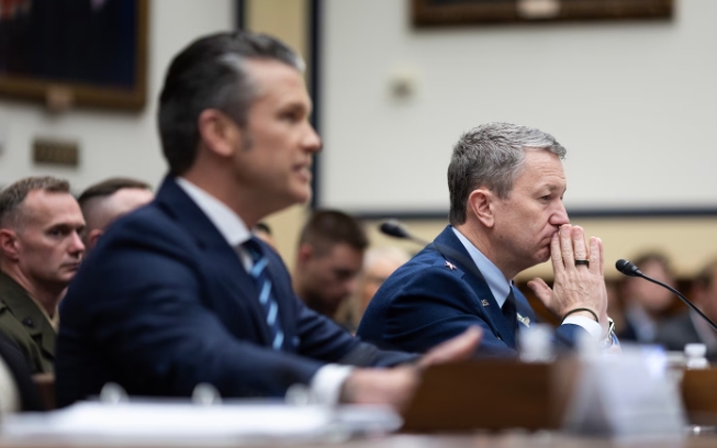 6月12日,赫格塞思(近處)和凱恩共同出席眾議院武裝部隊委員會聽證會。 《華盛頓郵報》
