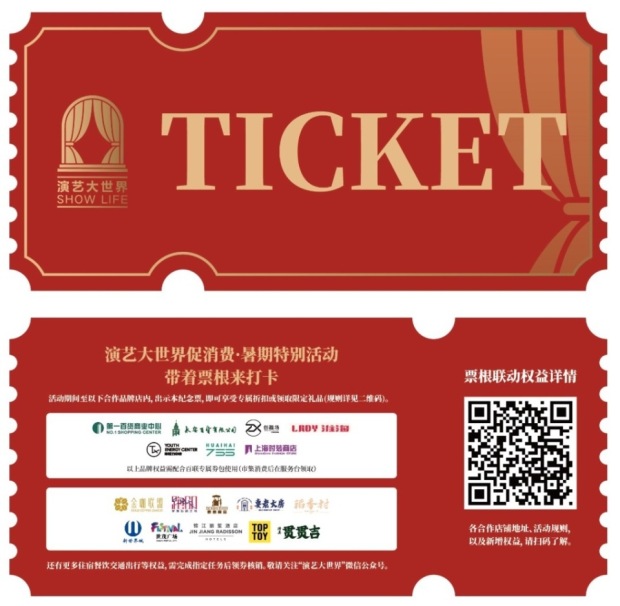 比如,在第一百貨、永安百貨、新世界城、世貿廣場等地,可以憑藉演藝大世界的票根,享受各種店鋪的折扣優惠;在新錦江大酒店、金門大酒店、錦江飯店等地,也可以憑藉演藝大世界的票根,享受餐飲、住宿的折扣優惠。
