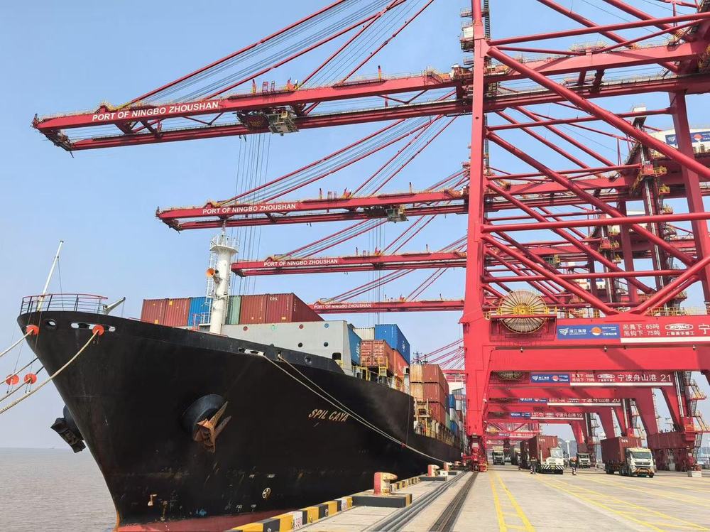 寧波舟山港,海關關員對首航船貨物裝卸作業開展現場監管 杭州海關