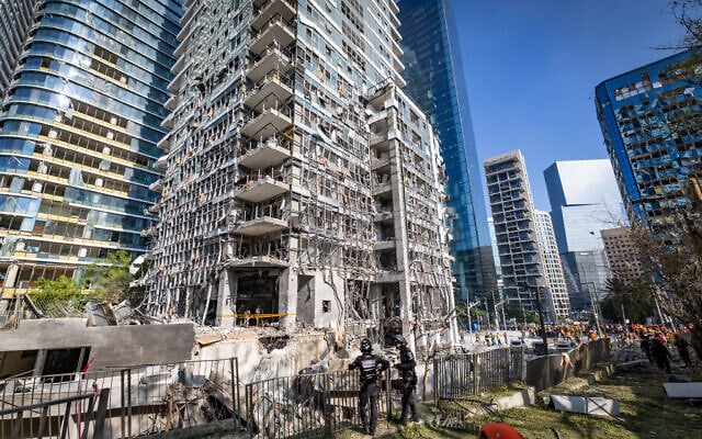 當地時間19日,被伊朗導彈打擊波及的以色列特拉維夫都市圈內環CBD建築 Flash90