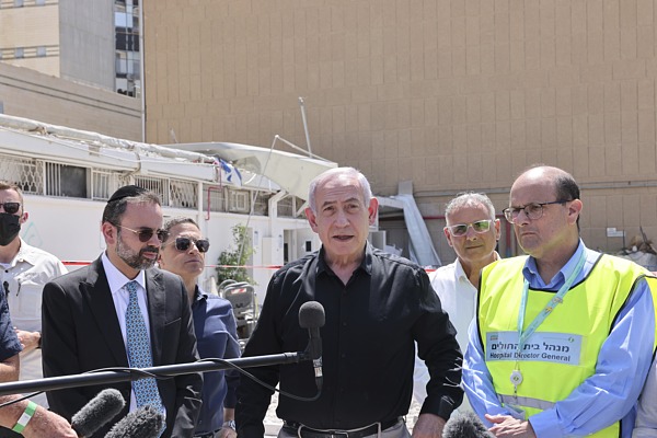 當地時間6月19日,以色列總理內塔尼亞胡視察遭伊朗襲擊的索羅卡醫療中心並接受媒體採訪。 視覺中國