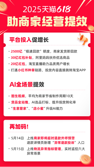 今年618淘寶重點扶持“優等生“,注重將資源傾斜向認真做產品和服務的優質原創商家,鼓勵他們創造更好的消費體驗。**“扶優”戰略下不斷引導行業良性發展,也是今年天貓618最重要的變化。**今年618期間,淘寶天貓投入百億規模資金,通過88VIP大額券、行業券、會員購物金等政策,對優質商家進行補貼——這得到了商家和消費者的歡迎。