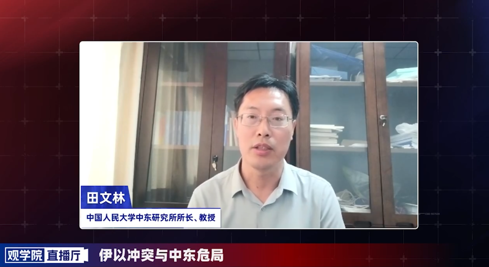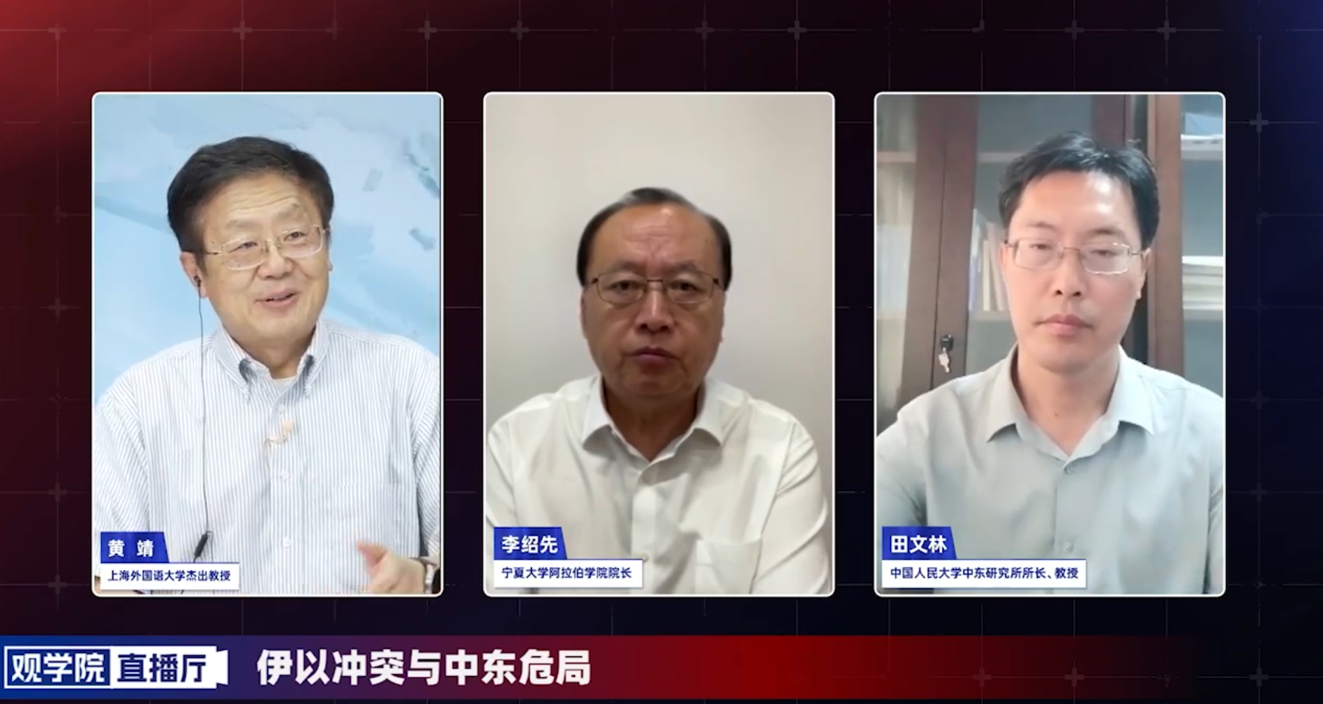 觀察者網《觀學院直播廳》第九期邀請上海外國語大學傑出教授黃靖、寧夏大學阿拉伯學院院長、中國中東學會副會長李紹先、中國人民大學國際關係學院特聘教授田文林進行對話,解讀當前的伊以衝突局勢。以下為文字稿上篇。