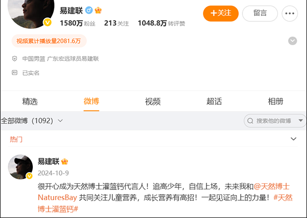 記者搜索發現,易建聯的社交賬號出事後再未更新,微博內容停留在2024年10月。