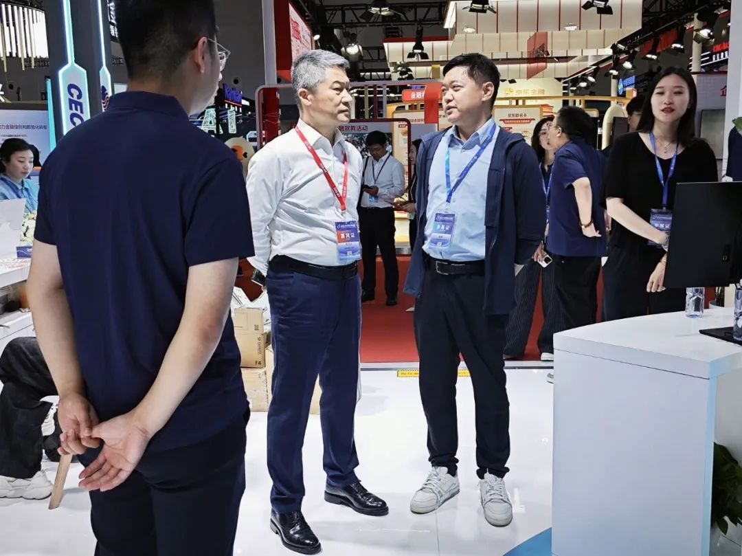 展會期間,中國金電董事長謝漢立等領導一行蒞臨達夢數據展台。達夢數據副總經理彭軍以標杆性應用案例為依託,詳細介紹了公司發展情況以及創新成果。謝漢立董事長對達夢數據的技術實力與市場價值給予了高度認可和充分肯定。