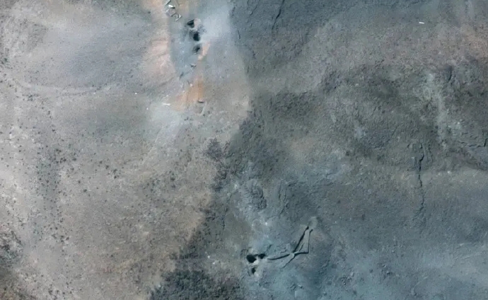 6月22日,衞星成像公司Maxar提供的圖像顯示,美國襲擊後伊朗福爾道地下核設施的地表出現數個彈坑 衞星成像公司Maxar