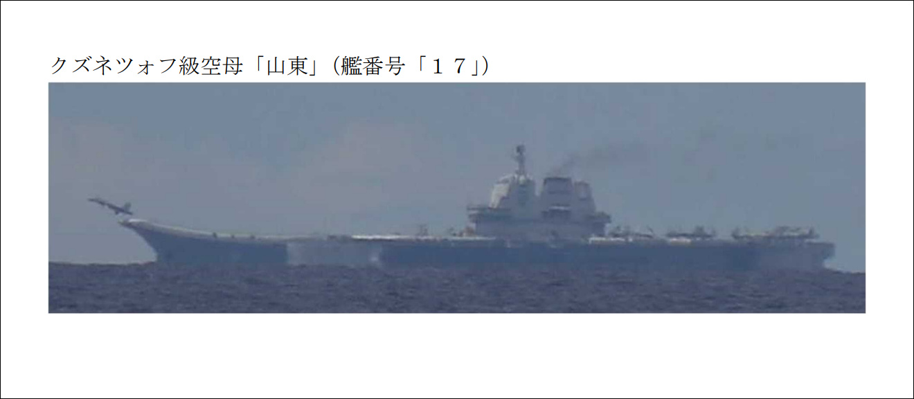 從6月9日到6月22日起降,日本海上自衞隊觀測到山東山東艦420架次起降,日均起降30架次,少於遼寧艦。6月21號,日本海自觀測到戰鬥羣中兩艘055型驅逐艦延安艦與遵義艦。