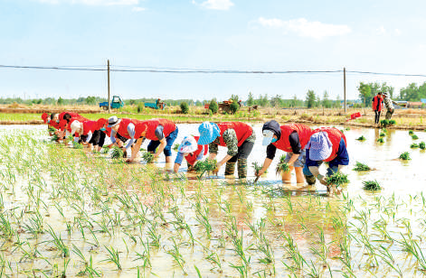 農忙時節,縣幹部幫助缺勞動力的種植户搶抓農時忙插秧。 資料圖:共產黨員網