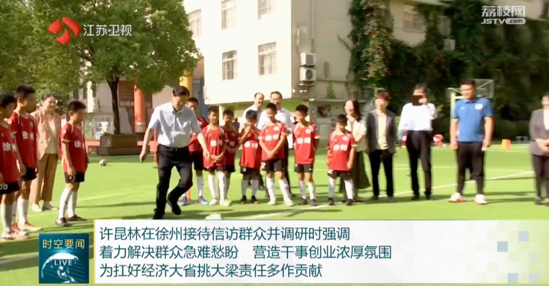 江蘇省省長觀看小學校隊訓練,還現場踢足球