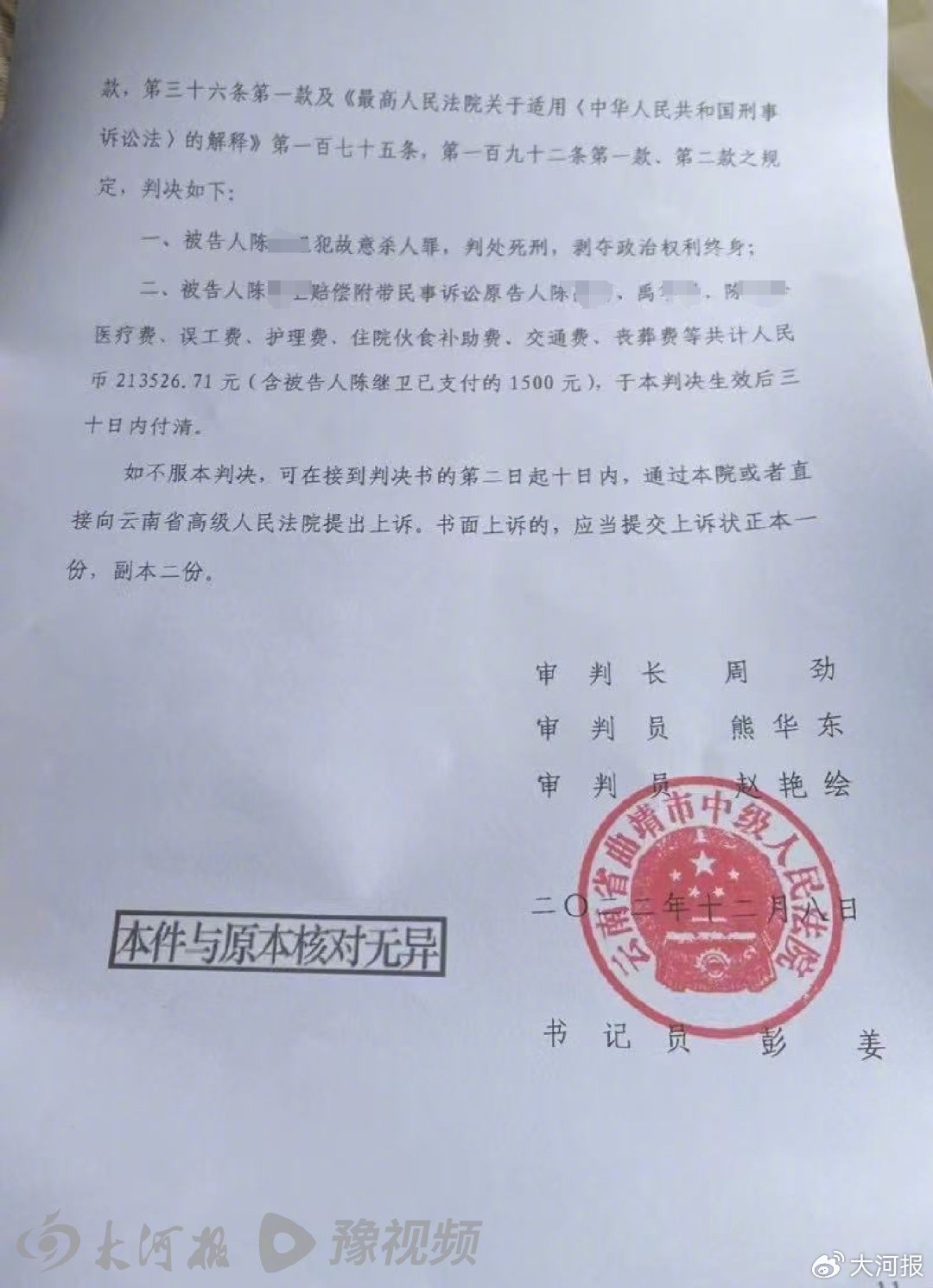 在該案中,陳昌雨既是被告人家屬也是受害人家屬。2021年3月14日,陳昌雨的父親陳某某因家庭矛盾將汽油潑向陳昌雨的母親禹某某並點燃,致其全身55%燒傷。禹某某經歷4個月救治後,因傷口感染中毒休克死亡。2022年12月,曲靖市中級人民法院一審以故意殺人罪判處陳某某死刑,陳某某提出上訴。2024年2月,雲南省高級人民法院二審裁定駁回上訴,維持死刑判決。