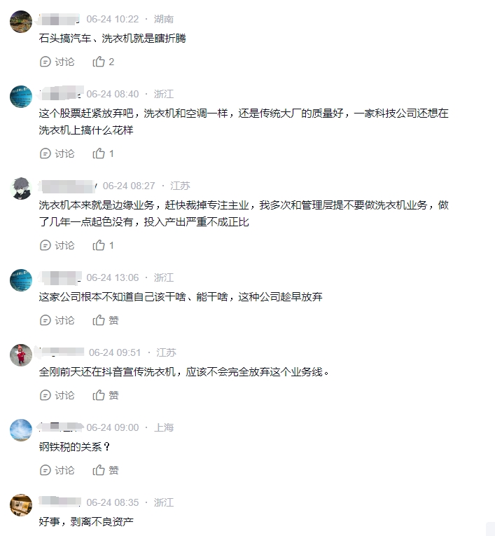 但在某家電巨頭相關負責人看來,石頭科技佈局洗衣機賽道本身就是找代工廠貼牌生產,屬於輕資產運營模式,因此所謂的“高投入”並不存在,短期內也不太可能因此導致集團現金流危機;而中美關税戰的影響,也主要是傳統白電企業,不太可能影響石頭科技。