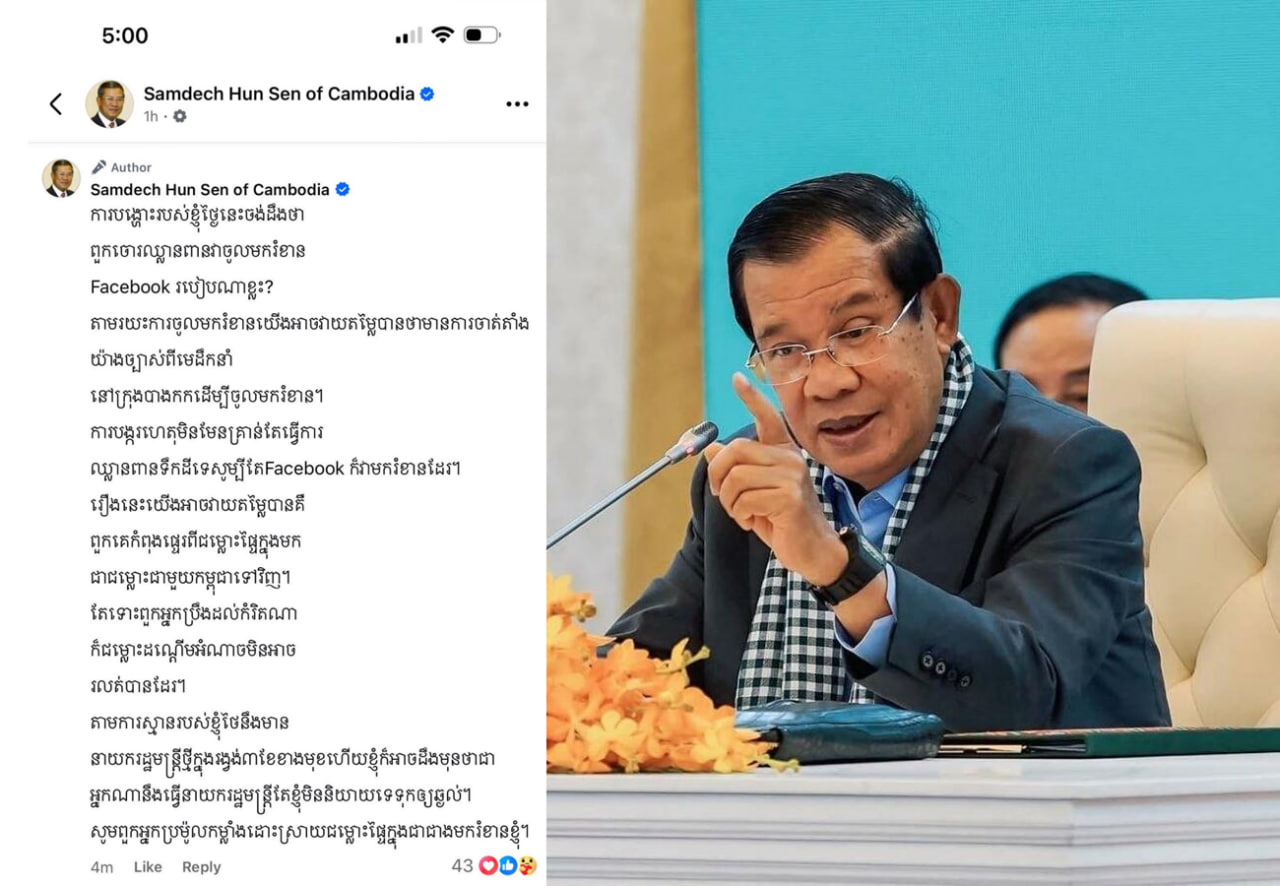 洪森臉書帖子截圖(左) 柬埔寨內閣辦公廳網站
