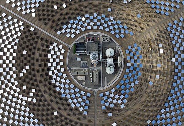 2024年6月1日,青海海西州,中國綠髮青海海西50兆瓦熔鹽塔式光熱發電項目(無人機照片)。 視覺中國