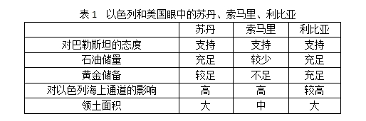 以色列位於西亞地區,毗鄰黎巴嫩與敍利亞,同地處伊拉克與伊朗的戰略打擊範圍之內,故“四場戰爭”論的邏輯容易被人接受。然而,地處非洲大陸的蘇丹、索馬里與利比亞與以色列在地理位置上相隔甚遠,另外的“三場戰爭”看似無關痛癢,實則值得玩味。