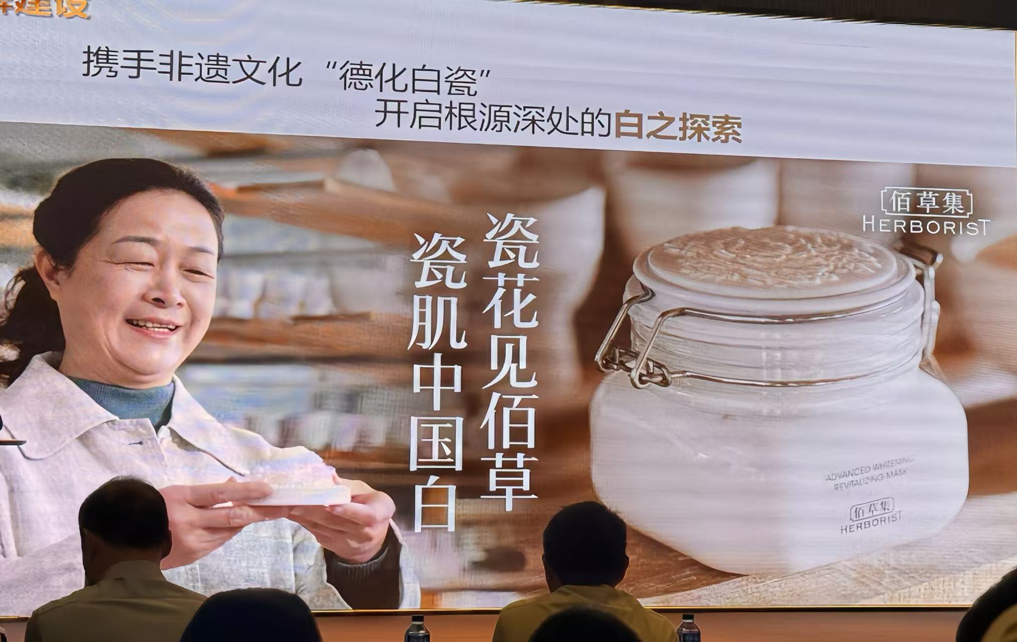 上海家化作為中國知名的日化品牌,具備走向國際市場的實力和潛力。作為佰草集的最大爆款單品,林小海介紹,大白泥聯名德化白瓷打造限量版,“將藍色花做成蓋子”,賦能並宣揚中國文化。