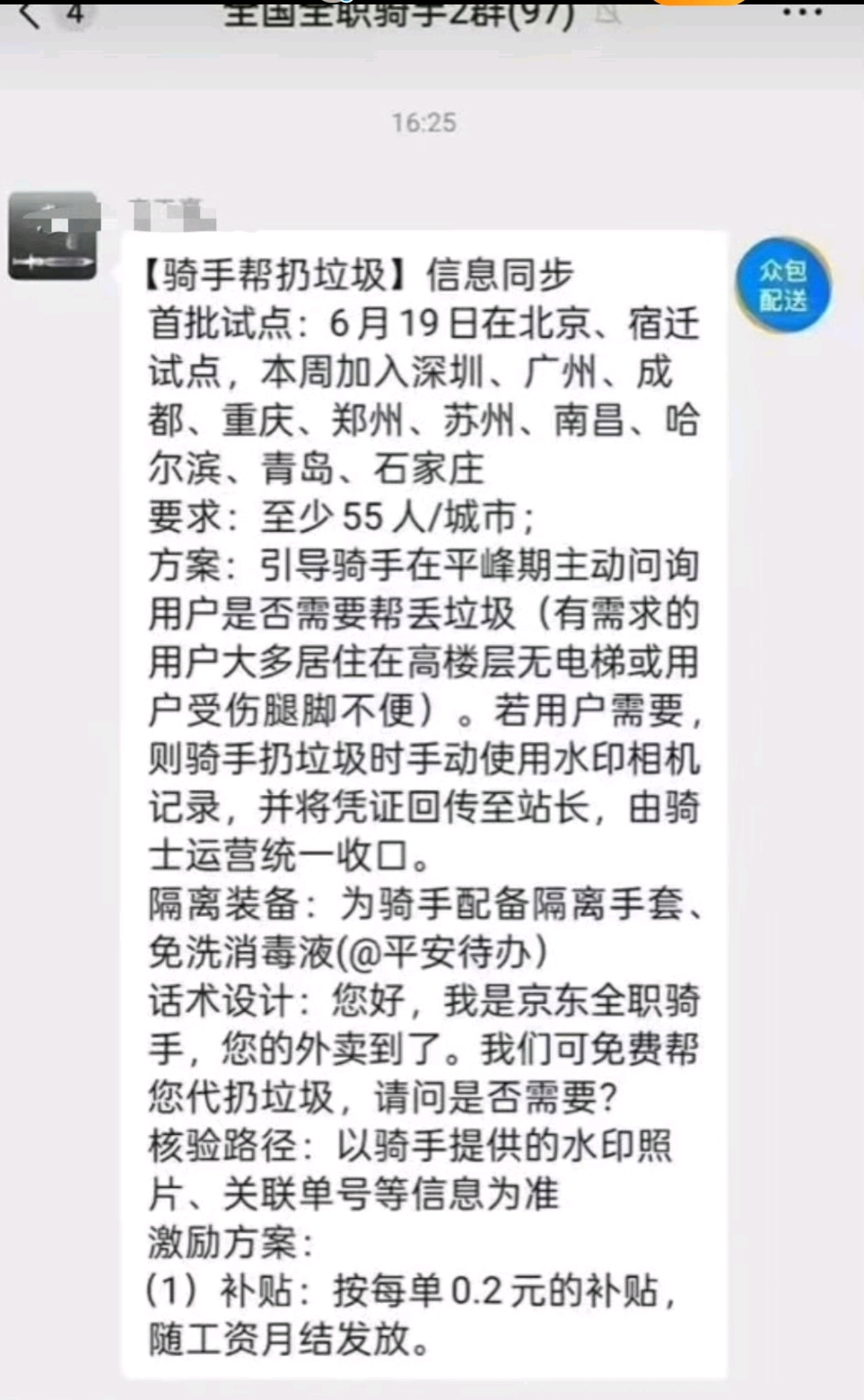 京東回應“試點全職騎手幫扔垃圾”:無強制,仍在早期討論階段