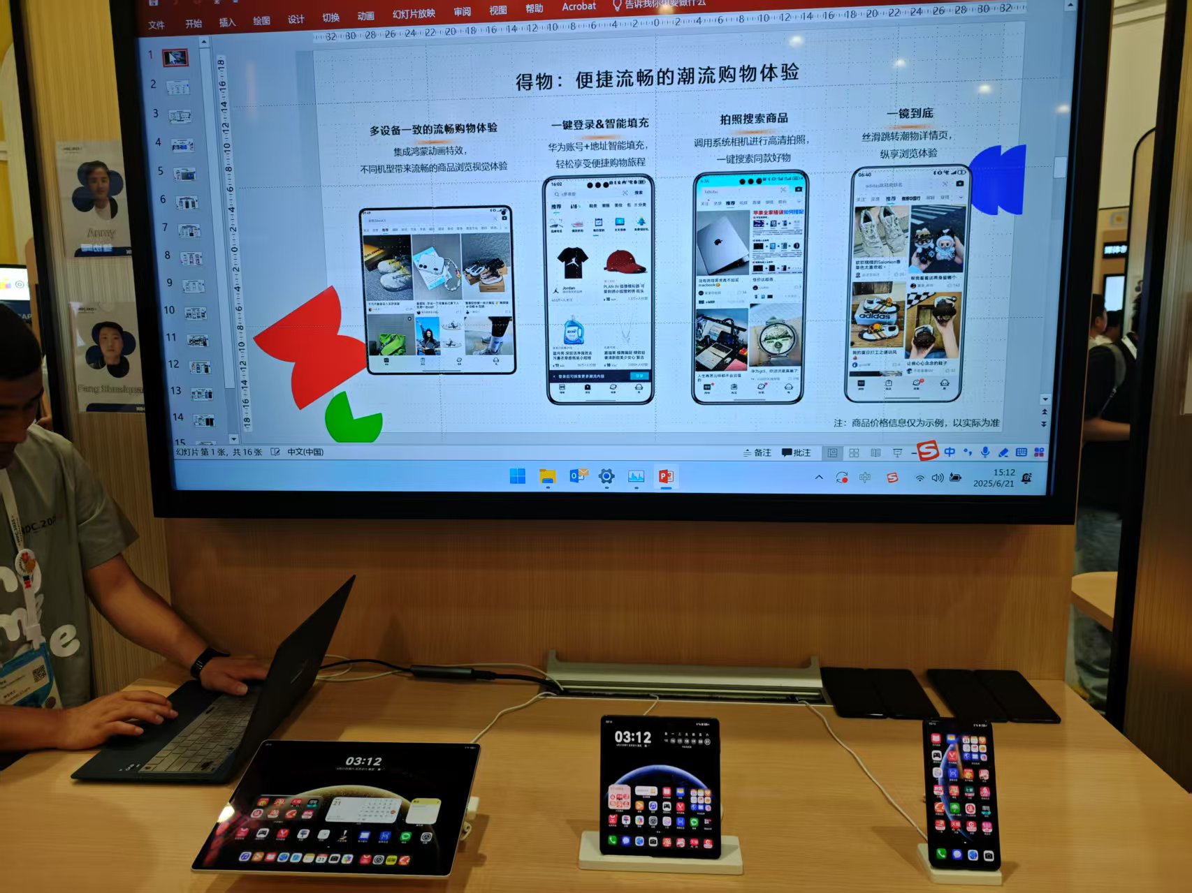 當用手機輕輕碰一碰電腦屏幕,就能把手機中的照片插入電腦端WPS的PPT中;當用户説一句話,就能讓喜馬拉雅“小雅”智能體定製專屬你的播客內容;當京東通過釐米級的高精度空間感知能力,幫助用户精準購物到家;當嗶哩嗶哩用少量代碼,就能實現闊摺疊內外屏沉浸觀影……