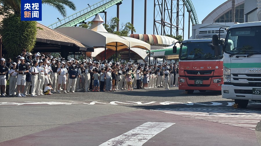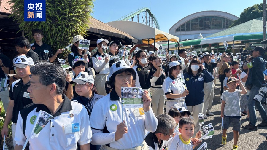 大批來自日本各地的大熊貓粉絲一早來到遊樂園,為它們送行。