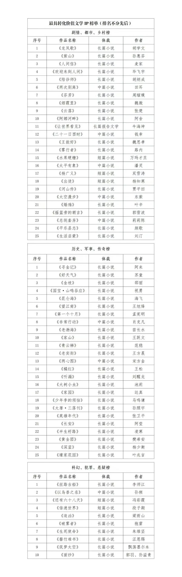 附錄:中國作協發佈的【“最具轉化價值文學IP推薦榜”】