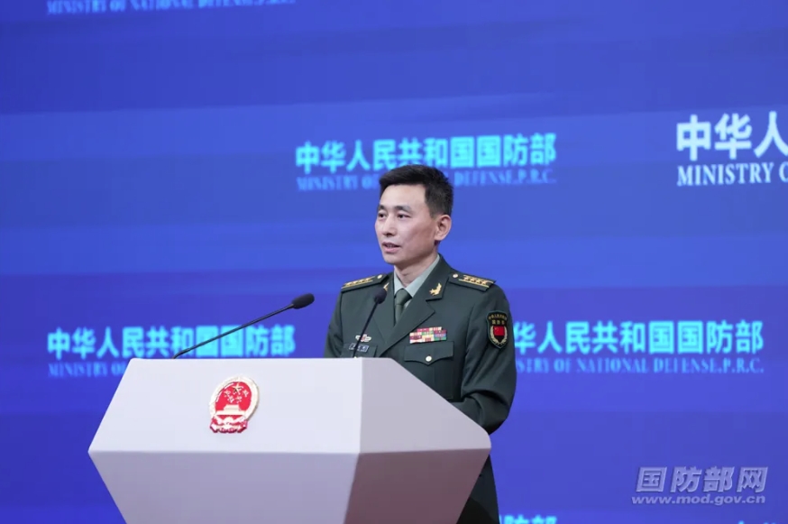 4月24日,國防部舉行例行記者會,國防部新聞發言人張曉剛大校答記者問。國防部