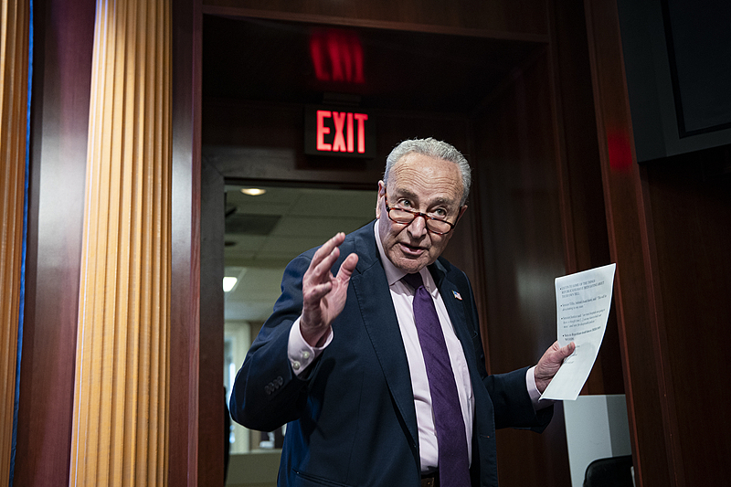 當地時間6月27日,美國華盛頓,國會大廈,參議院少數黨領袖、民主黨人查克·舒默與記者交談。 視覺中國