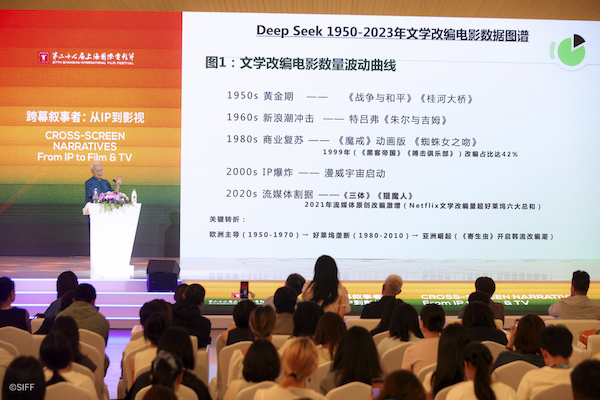 83歲的謝飛導演為了這次發言專門找DeepSeek幫忙:“我説我要講電影和文學,怎麼能講得生動?沒想到它(Deepseek)給了我很多建議,其中有一個1950-2023年文學改編電影數據圖譜,看來上世紀50年代-80年代是文學改編傳統的黃金期,後面是商業化、網絡IP化的東西進入了。”