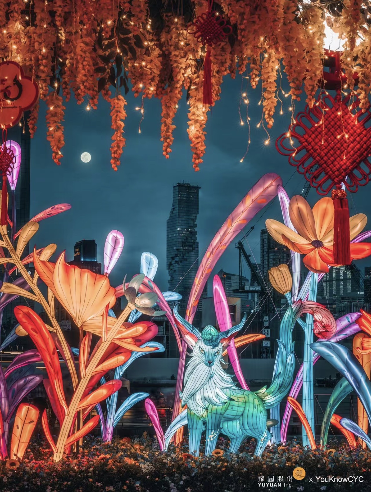 此番出海泰國,豫園燈會繼續將以《山海經》為藍本打造的IP“山海奇豫記”進行延展,而在設計中更是注重融入泰國本土特色,將《山海經》中各種古老且生動的中國傳統文化元素與泰國元素相結合,構建出了一個既神秘絢爛又充滿煙火氣的大型户外沉浸式體驗場景。