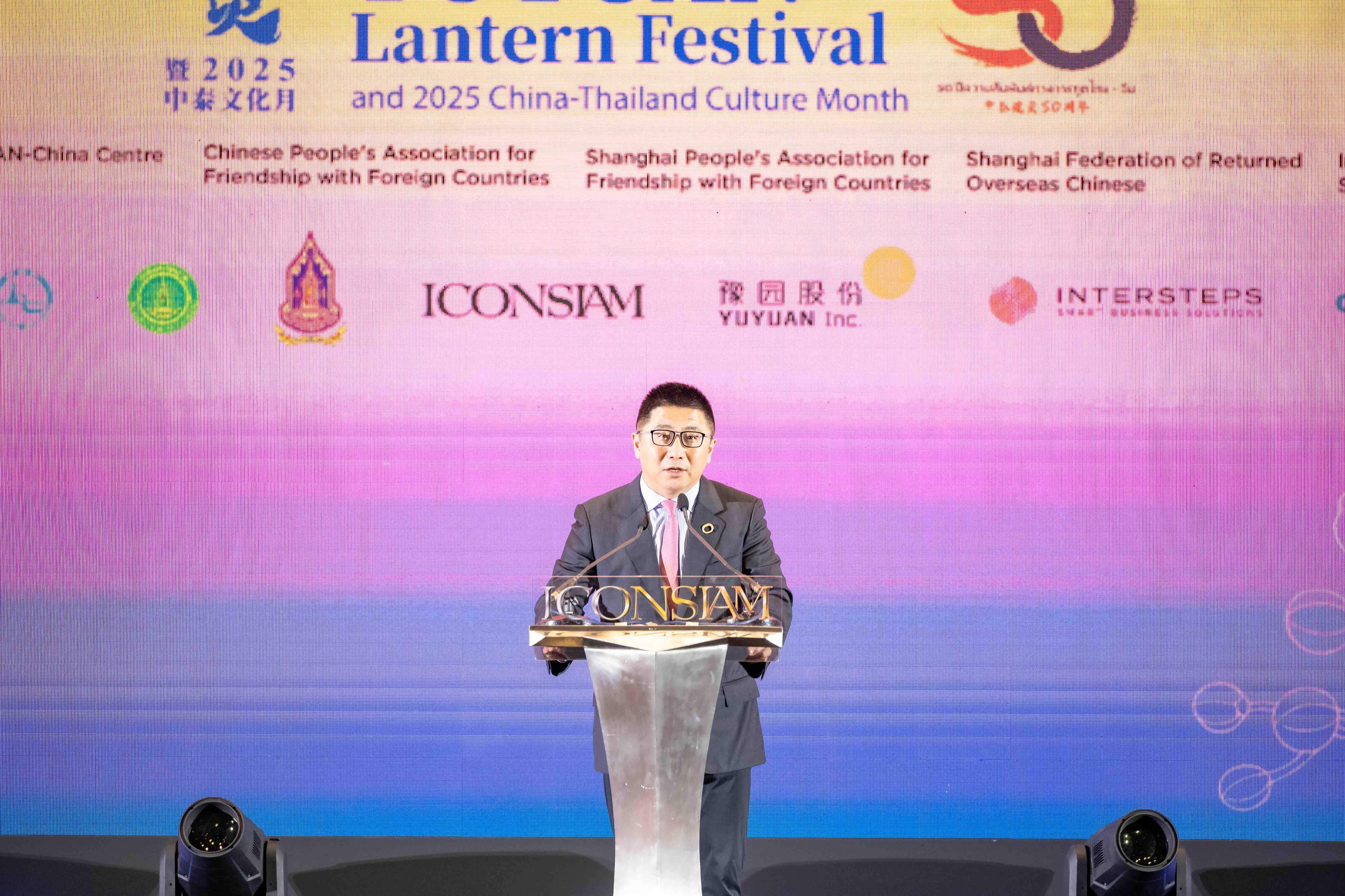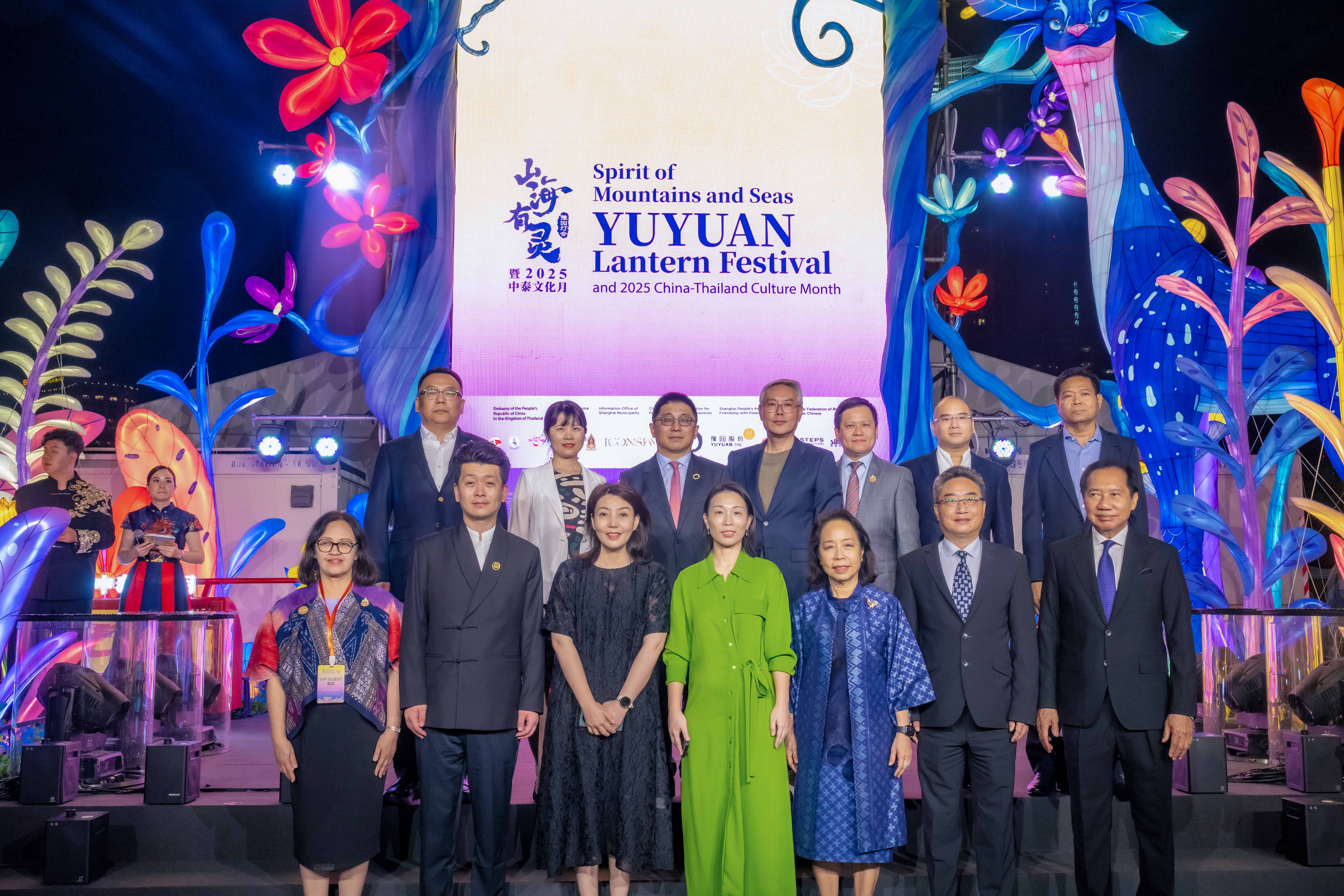 泰國文化部常務副次長拉查諾克(Rakchanok Kojaranont)、泰中文化經濟協會會長坡欽(Bhokin Bhalakula)、中國-東盟中心秘書長史忠俊、中國駐泰國大使館公使銜參贊常禹萌、暹羅天地董事長帕西尼(Pasinee Limatibul)、豫園股份董事長黃震等,共同出席了2025泰國豫園燈會亮燈儀式。