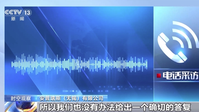 安普瑞斯(無錫)有限公司:因為事情還在調查中,我們也沒有辦法給出比較確切的答覆,目前沒有辦法給定論。我們這邊的政府機關也介入了調查。如果有後續的話,我們也會請媒體進行一些消息的發佈。