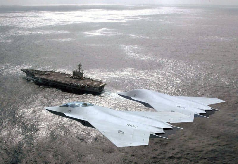 波音公司美國海軍第六代艦載戰機藝術渲染圖,包含有人和無人構型