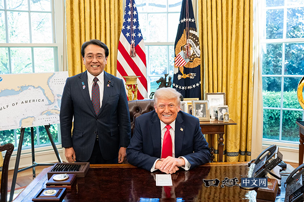 日本經濟再生擔當大臣赤澤亮正(左)、美國總統特朗普(右) 日本內閣府報道室