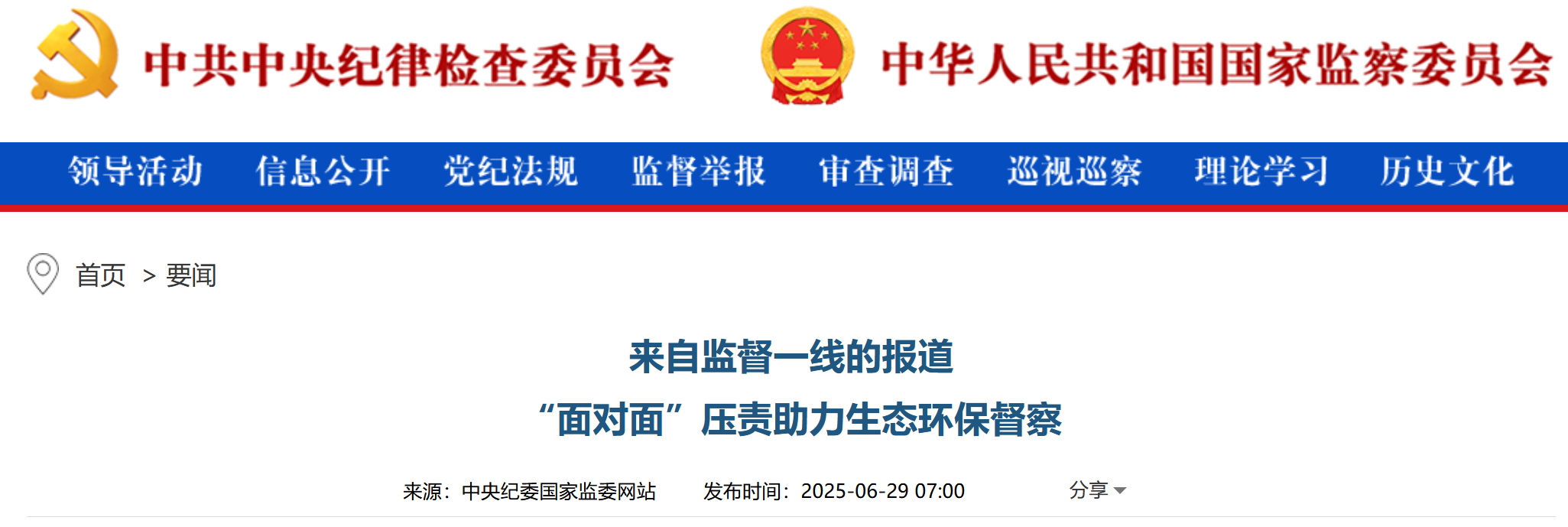 中央紀委國家監委網站6月29日刊發文章《“面對面”壓責助力生態環保督察》。