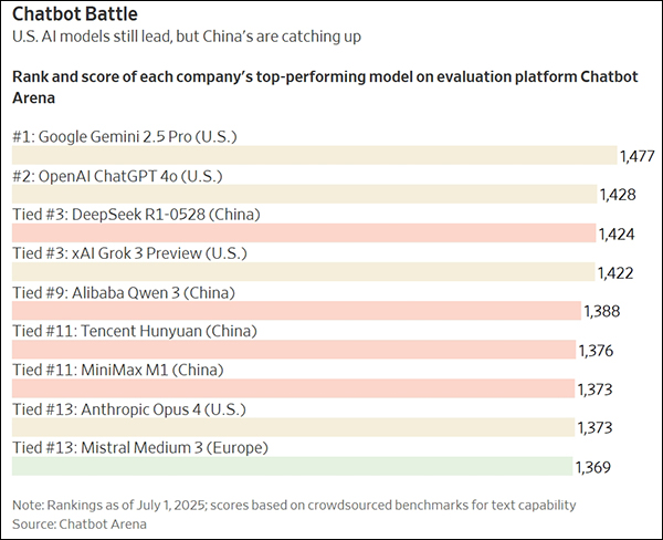 【文/觀察者網 王一】“中國人工智能(AI)公司正撬開美國對AI的全球鉗制,向被視為黃金標準的美國AI發起挑戰。”美國《華爾街日報》7月1日報道稱,從亞洲、中東、非洲到歐洲,從公立大學到跨國銀行,越來越多的國際用户開始轉向使用中國的AI大模型,而非美國產品。