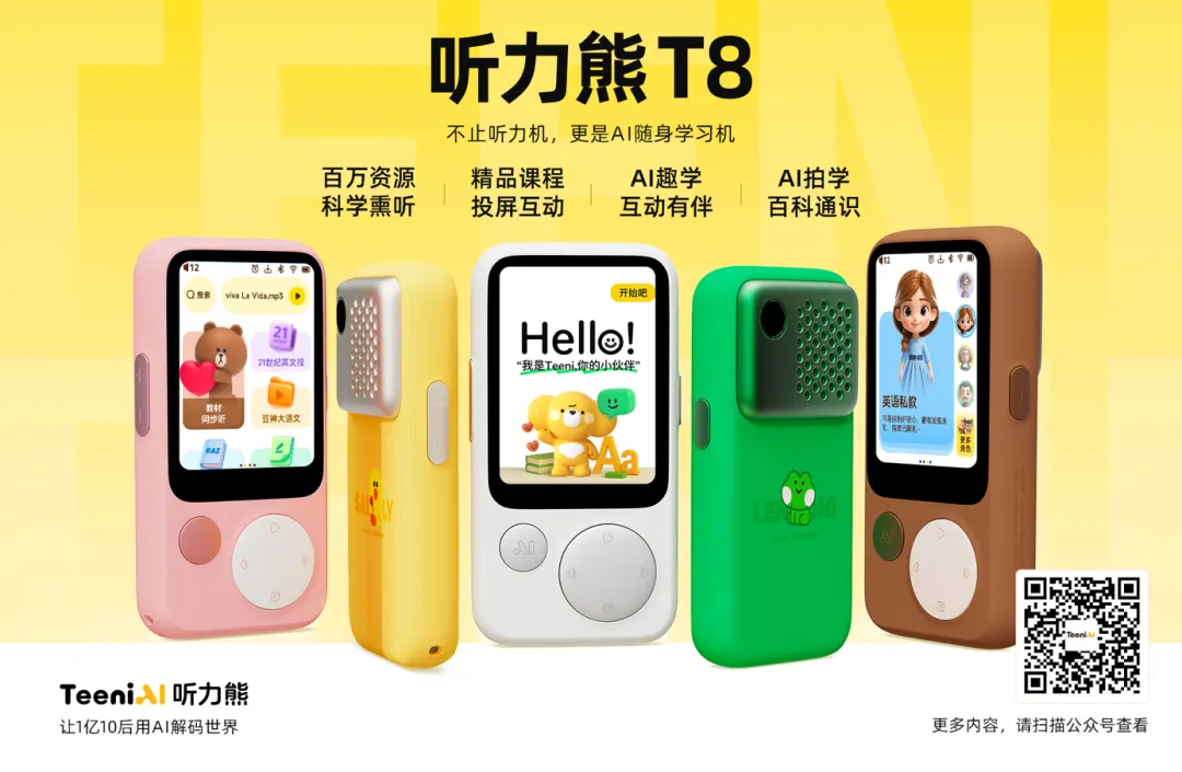 聽力熊發佈聽力熊AI智能聽力機,該產品兼備多款大模型應用落地、帶領聽力機進入2.0智能時代!是首台獲得iF、德國紅點獎兩項國際設計大獎的青少年智能設備。