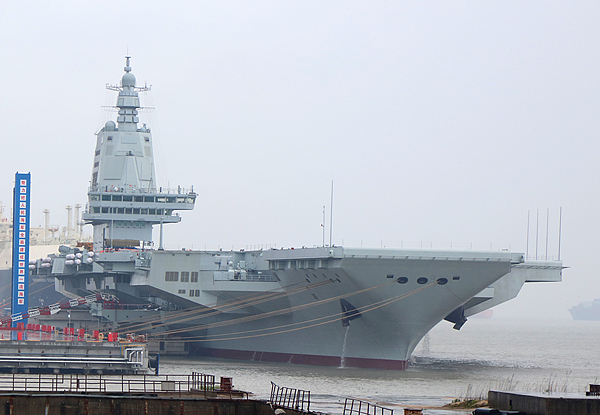 靠泊在船廠碼頭的中國海軍航母福建艦 視覺中國