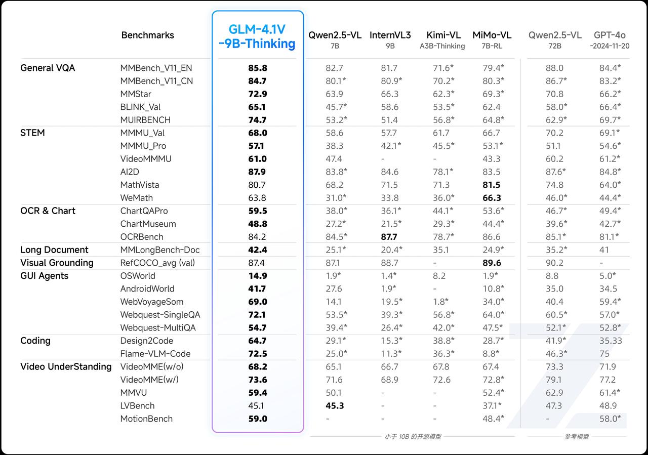 智譜輕量版GLM-4.1V-9B-Thinking模型跑分成績出眾