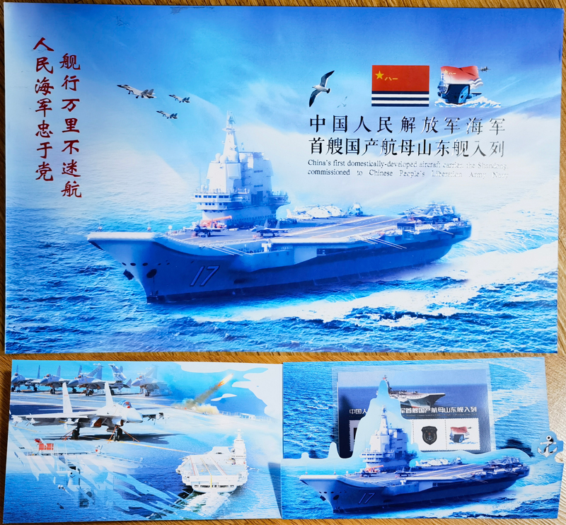 山東艦入列紀念郵冊。上圖為封面,下圖為展開後形狀 作者供圖