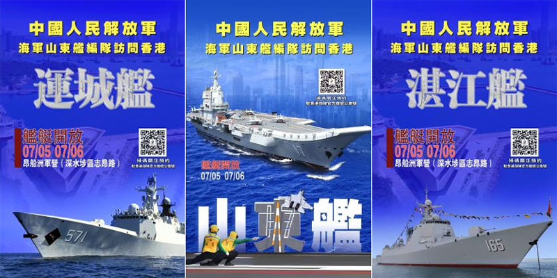 7月3日至7日,由航空母艦山東艦、導彈驅逐艦延安艦和湛江艦、導彈護衞艦運城艦組成的海軍艦艇編隊將訪問香港。