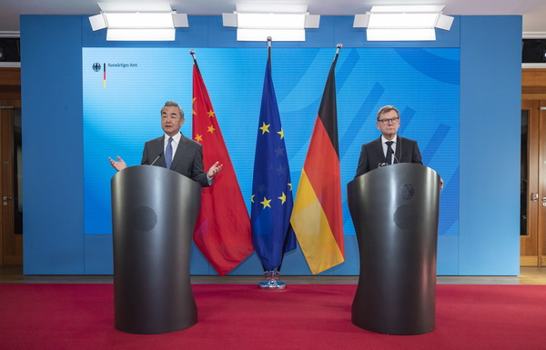 王毅説,今年是中歐建交50週年,中德全方位戰略伙伴關係也開啓了新的10年。中歐、中德關係步入承上啓下的關鍵節點。中德關係發展得好,不僅將帶動中歐關係整體向好,對世界的穩定發展也具有重要意義。作為全球第二和第三大經濟體,中德肩負重要國際責任,承載各方期待,應攜手並進,對彼此互信再確認,對兩國合作再鞏固,對雙邊關係再深化。