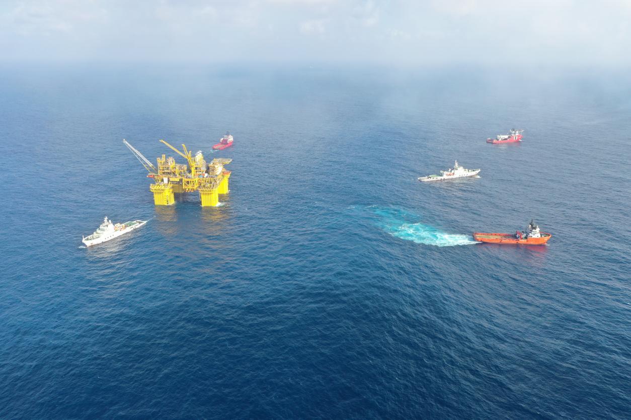2021年2月6日“深海一號”能源站順利抵達海南島東南陵水海域。中國海油供圖
