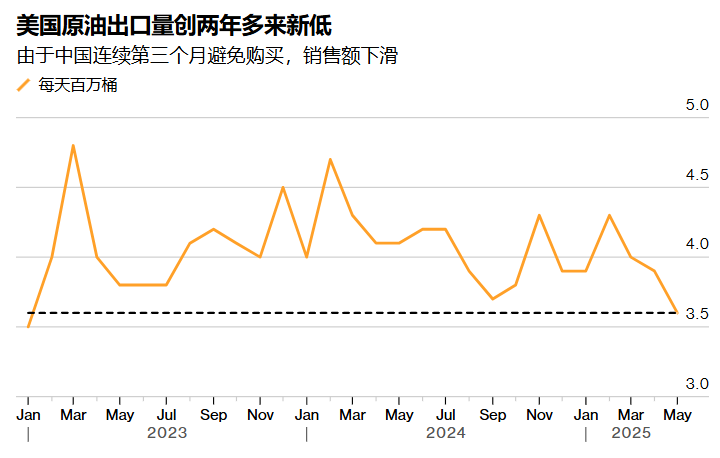 根據週四公佈的美國官方調查數據,中國這一全球最大的原油進口國在5月未購買任何美國原油,與3月和4月的情況一致。這兩個全球最大經濟體之間的貿易爭端也給市場帶來了衝擊。中國買家的缺席導致美國海外原油銷售量暴跌至兩年來的最低水平。