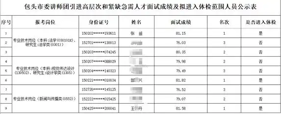 2025年包頭市委講師團引進高層次和緊缺急需人才面試結果及擬進入體檢範圍人員名單的公示