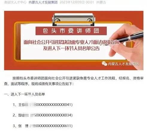 據潮新聞報道,近日有網友向其反映,內蒙古自治區包頭市委講師團2025年1月面向社會公開引進高層次和緊缺急需專業人才招考過程中,存在違規操作行為。網友表示,“2023年12月,包頭市委講師團曾進行過一輪面向社會公開引進高層次和緊缺急需專業人才,當時因被舉報中止。今年2月份發佈的公示名單中,3名通過面試的考生姓名,與此前因舉報被中止時入圍面試的考生姓名居然一致。”