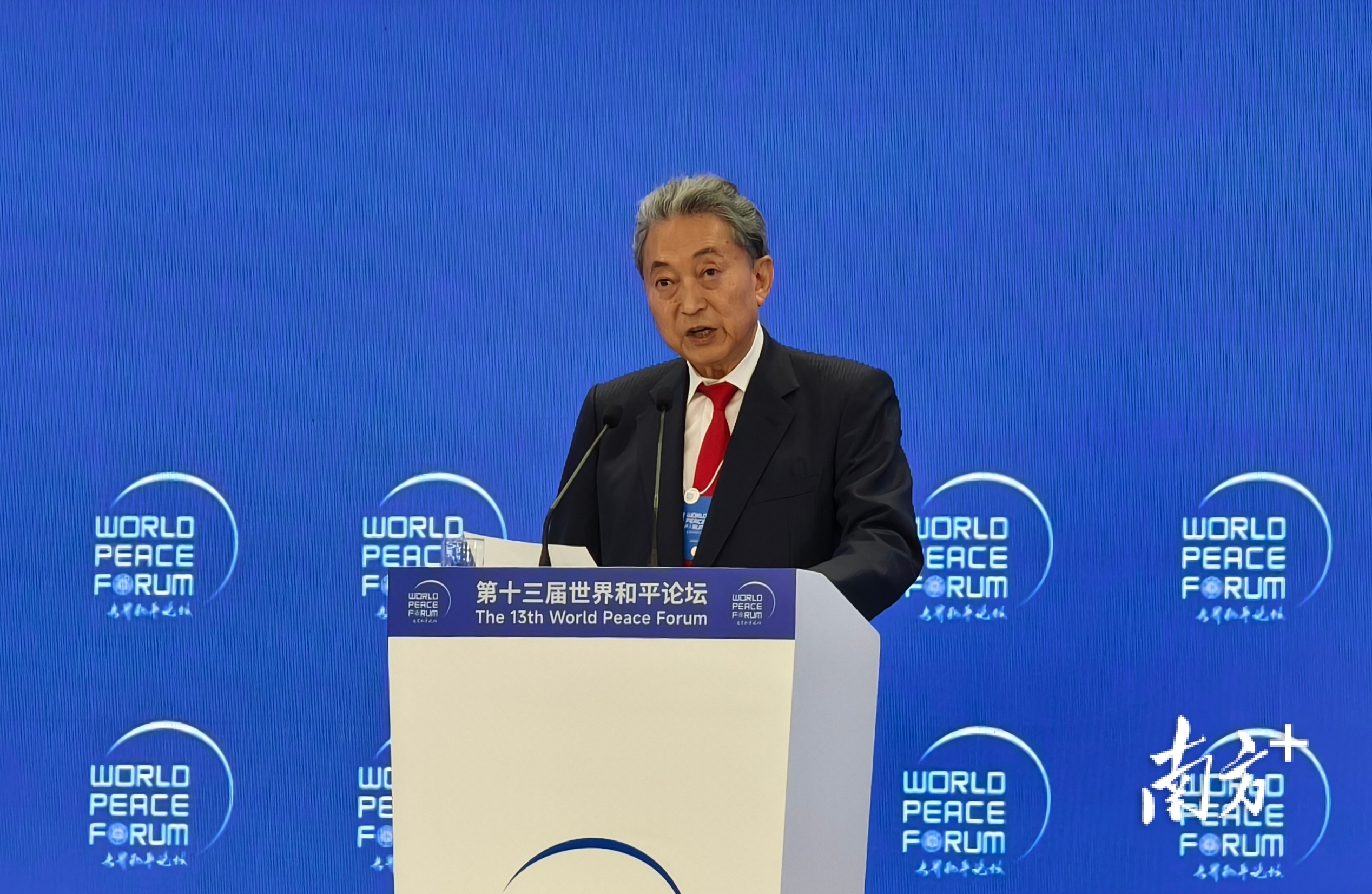 日本前首相鳩山由紀夫在世界和平論壇發表演講。 南方日報