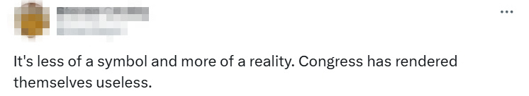 有人接過他的話茬,“與其説是一種象徵,不如説是一種現實。國會已經屁用沒有了。”